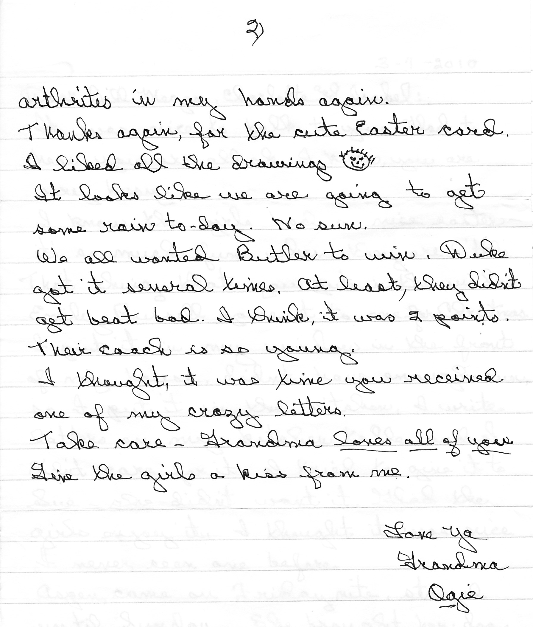 a letter from Grandma 3/7/2010