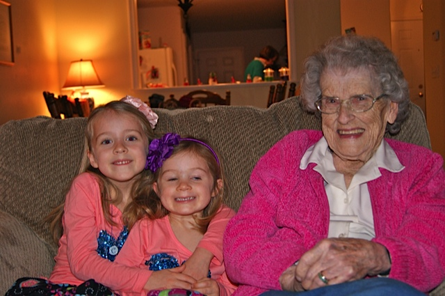 As with my grandfather’s funeral, my mom asked the family to brainstorm adjectives to describe my grandma. (as mom joked, “…apparently this is what English teachers do.”) Somebody suggested the word “stubborn,” and I know there was some doubt on my mom’s part whether or not such a word should be included at someone’s funeral. I can tell you there is a thread of stubborn that runs at least from my grandma Ogie through her daughters, to their children, and then to Ogie’s great grandchildren. When Ogie’s daughter Judy was a little girl, she said something that hurt my mom’s feelings. Grandpa and my mom were set to head off to work at the store, and Judy was told to sit on a step until she apologized to my mother. Judy sat on the steps and refused to apologize. My mom and grandpa went to work. When they came home for lunch, Judy was still on the steps and still refusing to apologize. My grandma liked to tell that story. As for her own stubbornness, when Ogie moved into my parents’ spare bedroom, I was told that as she came in with mom, my dad said something to the effect of, “Welcome to our home.” My grandmother’s response? “Thank you, but I don’t want to be here.” It wasn’t that my grandmother didn’t like my dad or my parents’ house. Right up until the end, Ogie was worried about everyone else, and she hated the idea that she was being a burden. She wasn’t. We were all so thankful to get to spend time visiting with her.