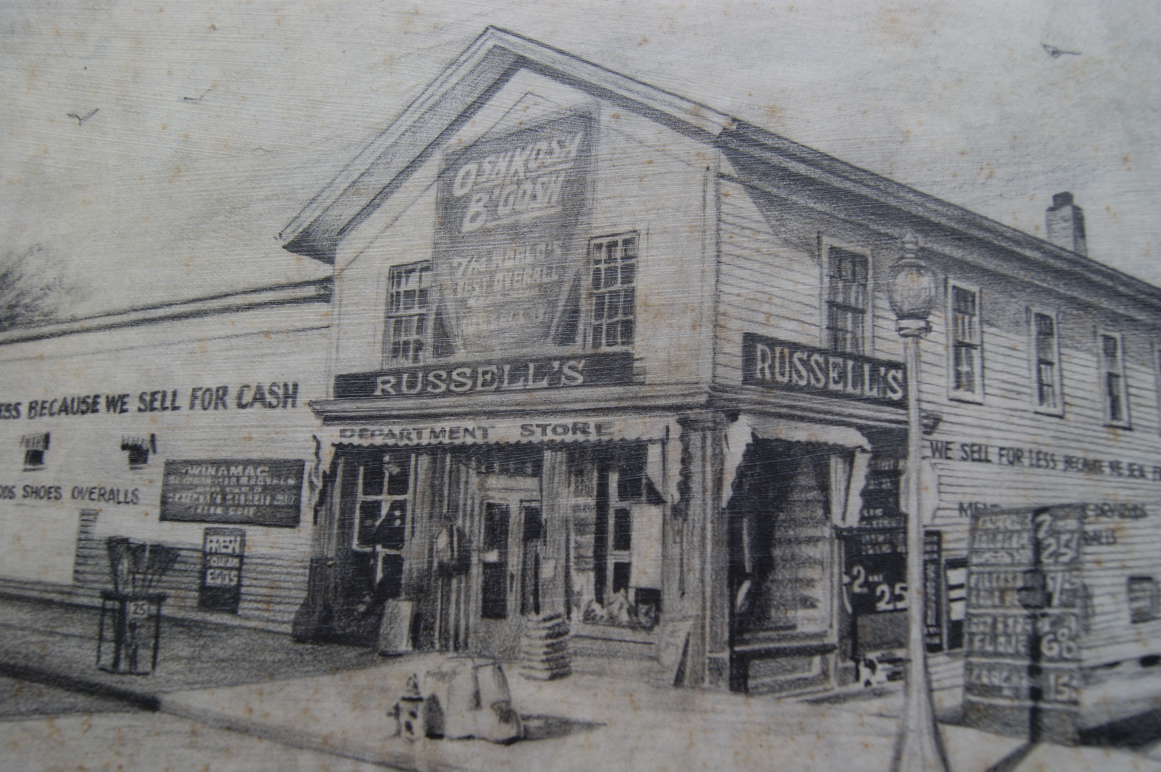 You might be surprised to know that my grandma Ogie was quite the volley balloon player. This was a made up game that my sister and I used to play with her when we’d visit her house on Highway 14 across from the Tippecanoe River in Winamac, Indiana. Grandma would take two wooden chairs from the kitchen table, spread them out the width of the kitchen, and place a broomstick across the chairs so that we could swat a balloon back and forth over the wooden “net.” It was always my sister Anne and Ogie against myself. Other activities included a board game called Aggravation, regular walks across the back pasture to what was then Ben Franklin for a toy, and each fall we went to Russell’s Old Trading Post for school shoes. There was a conveyor belt that went from the back room down to the basement and we used to ride it up and down. The setting for my short story “Ye Olde Trading Post” in my novel Horseshoe was based on a drawing of the store as it used to be. My grandma and grandpa were fun. As kids we weren’t afraid to break anything or make a big mess. Their house, and their lives for that matter, were for living.